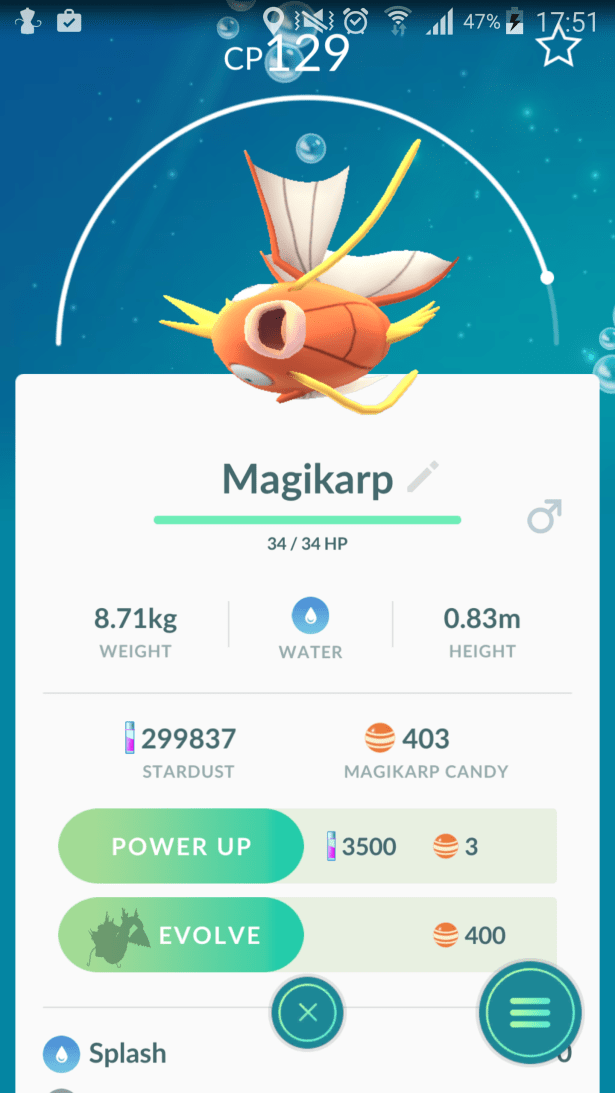 Äntligen skrapat ihop 400 godisar för att kunna utveckla Magikarp!