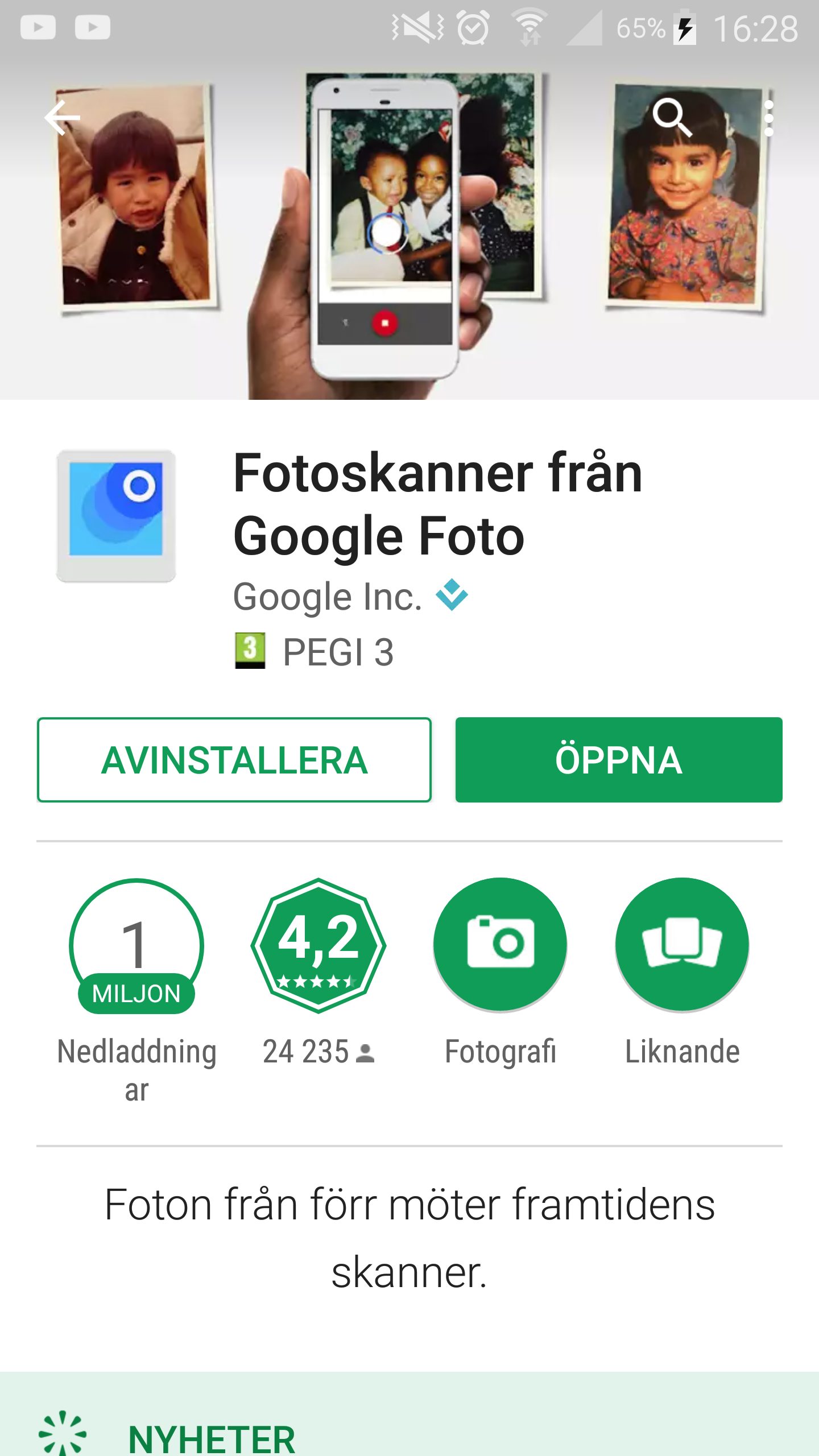 Tänkte testa denna eftersom jag har börjat använda Google Foto istället för det vanliga galleriet. Folk har klagat på upplösningen. Jag kan egentligen inte avgöra det, men testade att ”skanna” och ta ett vanligt foto.