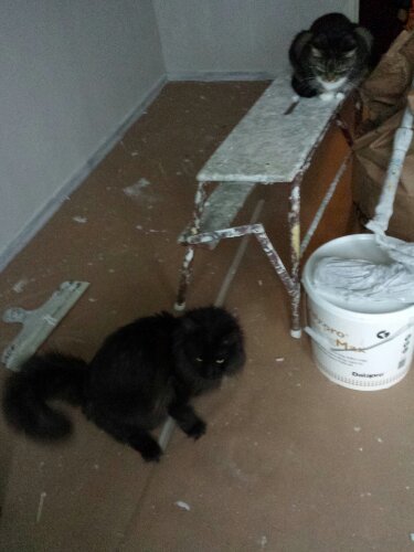 Ska inhysa kissarna hos kompisar imorgon (de mår sämre än vi gör av ljudet) och hoppas att försäkringsbolaget kan fixa boende åt oss under tiden.