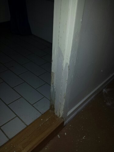 Här skulle dom ha tagit bort hela tröskeln + dörrkarmen. Nähä, tröskeln ny och fin, dörrkarmen samma mögliga skit – why?