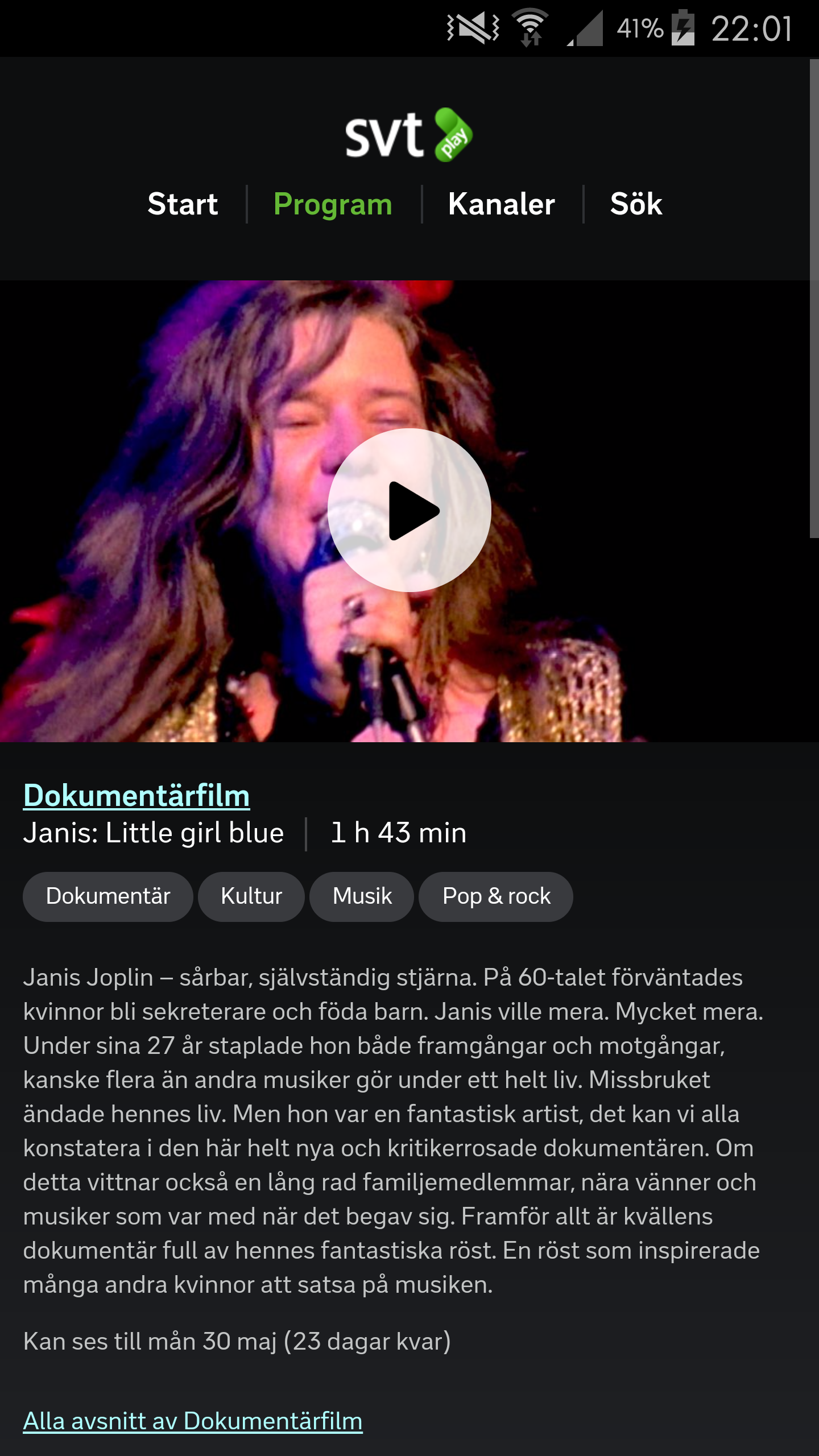 Tydligen gått en dokumentär om Janis på SVT. Måste se den snarast.