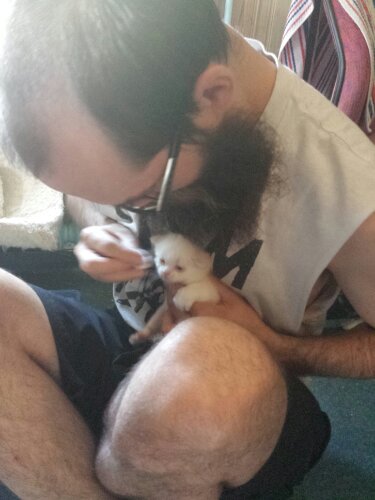 Japp, här sitter jag ute i bushen, med 21 st katter av olika utvecklingsgrad och med en pojkvän på akuten med kattbett.
