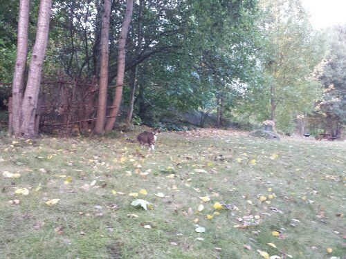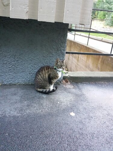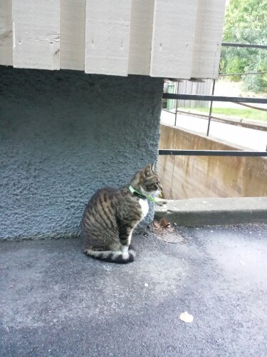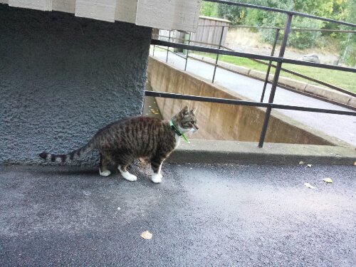 Bara att följa med. Plingade på där hon ville in, ingen öppnade. Kom dock en granne som presenterade kissen som Mjau och släppte in henne i sin lägenhet. Smart och tydlig kisse.