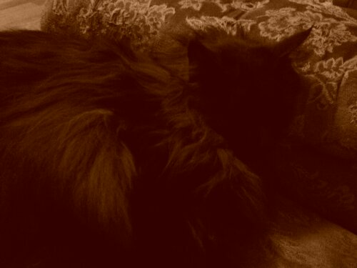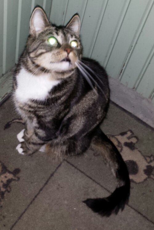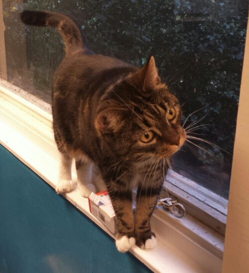 Då ser jag ett ensamt litet kisseavtryck på balkongbordet.