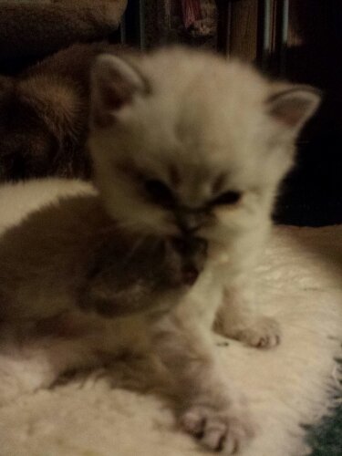 Fick se dessa gullungar när jag var där. Två veckor gamla Brittisk korthår.