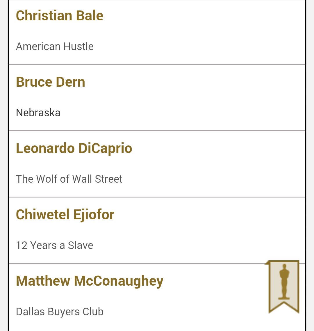 Oscars 2014 4 mars 20144 mars 2014Penardun Film, TV Etiketter:Leonardo DiCaprio, Oscar 2014 Lämna en kommentar Sen kommentar angående Oscars. Såg inte galan, brukar inte göra det pga tidsaspekten. Hoppades på att Leonardo diCaprio skulle få en statyett i år. Han förtjänar det verkligen! 😦 Vill du verkligen dela? Tjohoo! Tryck: Klicka för att e-posta en länk till en vän (Öppnas i ett nytt fönster) E-post Dela på TumblrMerTweet Klicka för utskrift (Öppnas i ett nytt fönster) Skriv ut Klicka för att dela på Reddit (Öppnas i ett nytt fönster) Reddit PocketGilla Laddar in …