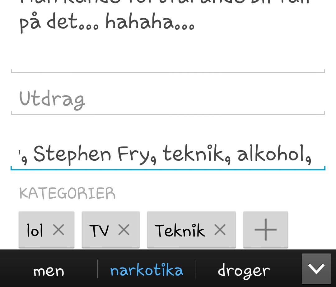 Jag vill inte skapa nån ”stor blogg”. Skriver mest för att min mamma ska få lite koll på mitt liv, eftersom jag är så fucking jag dålig på att telefonera. Sen svamlar jag om mina åsikter för att få lite upplopp. Ingen röd tråd alls.