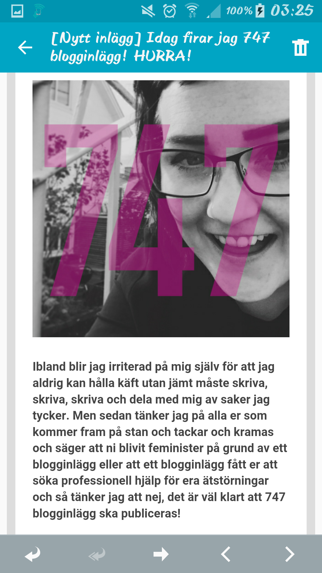 Att skryta med 747 inlägg är knas, jämfört med mina 2755. Ok, hennes kanske är ”debattinlägg” allihopa (vet ej), men en blogg kräver närvaro också. Eller?