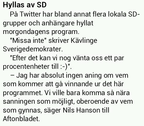 AB var snabba med att trasha programmet och referera till SD, som vanligt.