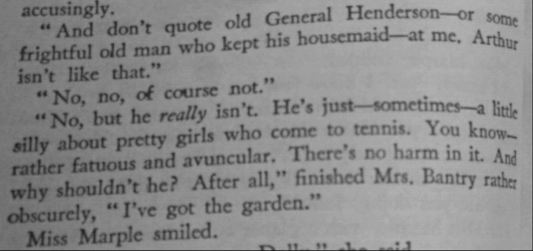 Margaret Rutherford är intressant som Ms Marple. Lite rolig och har ett påträngande sätt. Jag ser dock hellre Joan Hickson. Efter att ha läst ALLA Agatha Christie så har jag en klar bild av både Poirot och Marple. Rutherford är inte ens i närheten av det som beskrivs i böckerna. Det är däremot Hickson.