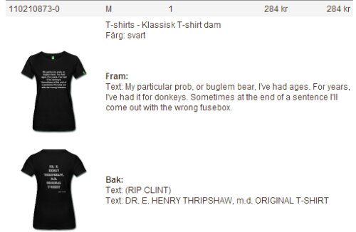 Fylleköp 17 mars 201317 mars 2013Penardun Uncategorized Etiketter:humor, inköp, Monty Python, pengar, personligt, t-shirt Lämna en kommentar OBS! (VARNING!) För mycket Monty Python på fyllan kan leda till spenderade av pengar som inte finns. Vill du verkligen dela? Tjohoo! Tryck: Klicka för att e-posta en länk till en vän (Öppnas i ett nytt fönster) E-post Dela på TumblrMerTweet Klicka för utskrift (Öppnas i ett nytt fönster) Skriv ut Klicka för att dela på Reddit (Öppnas i ett nytt fönster) Reddit PocketGilla Laddar in …