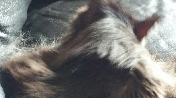 Ippo putsar sej själv och jag klappar lite. Se pälsen som ligger lite ovanför, inte konstigt att katthår fastnar överallt när det där uppstått efter två minuters ”skörd”.
