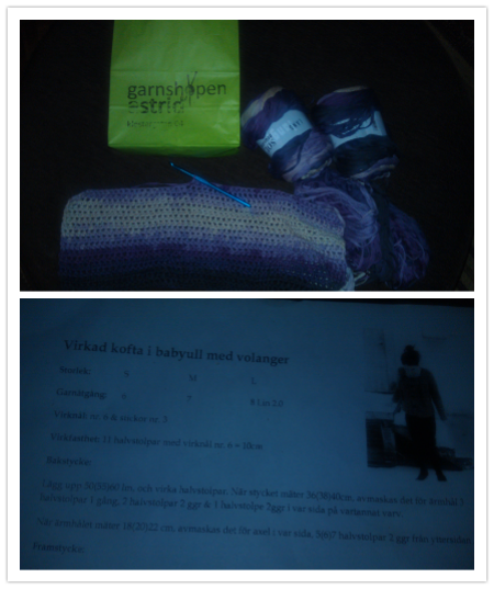 Mamsen på besök idag. Fick garn och virkmönster (kofta). Gulligt!