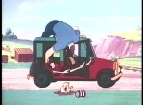 Hahaha, seriöst…! Allt borde vara så här ”o-PK”: kolla bara hur Bluto slänger in Olive Oil i bilen.