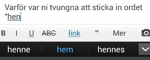 Inte ens autocorrect erkänner ”hen” som ett ord 😛