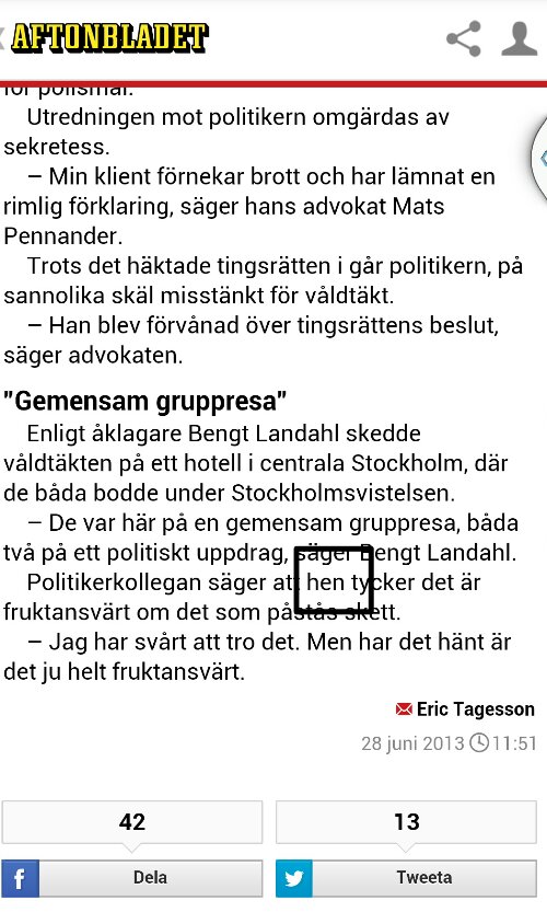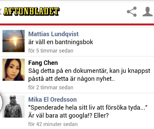 Jag försöker låtsas att det är lite ”go slumming” vad gäller mitt Aftonbladetläsande. Som ett studiebesök hos en OBS-klass. ”Oj, så taffligt de skriver”, ”Syftningsfel och felstavningar”, ”Oj, oj, oj, men det var ju bara att förvänta sej, dessa artikelutsprutare har ingen yrkesheder, jag gissar att de har någon form av provisionslön?” ”Stackarna, deras dröm om ett jobb inom media, blev att stirra in i en skärm dagarna i ända, i jakt på nyheter (nya, gamla, total rappakalja, allt duger), som sedan körs genom Google translate och sedan rakt ut i appen. Tidningen borde, rimligtvis, vara mer selektiv, men jag vet inte. Det är över ett år sen jag köpte en nyhetstidning senast.