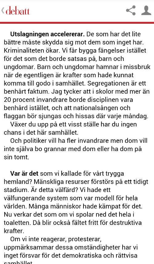Råkade på det här debattinlägget på AB idag. Var tydligen från 30 april, därav den extrema mängden kommentarer, förmodligen (rekord?)