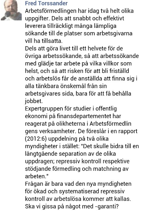 Att detta förslag, om ett utkastande i arbete (vilket det faktiskt är!) ens uppkommit är ett bevis på den bristande empati, som nu har etablerats i samhället (åtminstone bland våra folkvalda politiker). Jag har tyvärr även hört gemene man debattera om våra s.k. inbillade sjukdomar. När folk utgår från att det är så mycket fejk vad gäller sjukskrivningar och arbetslöshet, så måste det vara ett tecken på något annat. Varifrån kommer denna inbillning, att alla vill snylta på samhället? Tanken att ”Jag jobbar och sliter och betalar skatt, att det finns så jäkla många losers och slöfockar som bara parasiterar och tror att de kan glida genom livet utan att lyfta ett finger! Fy fan, asså! Nåt måste göras!” måste komma nånstans ifrån.