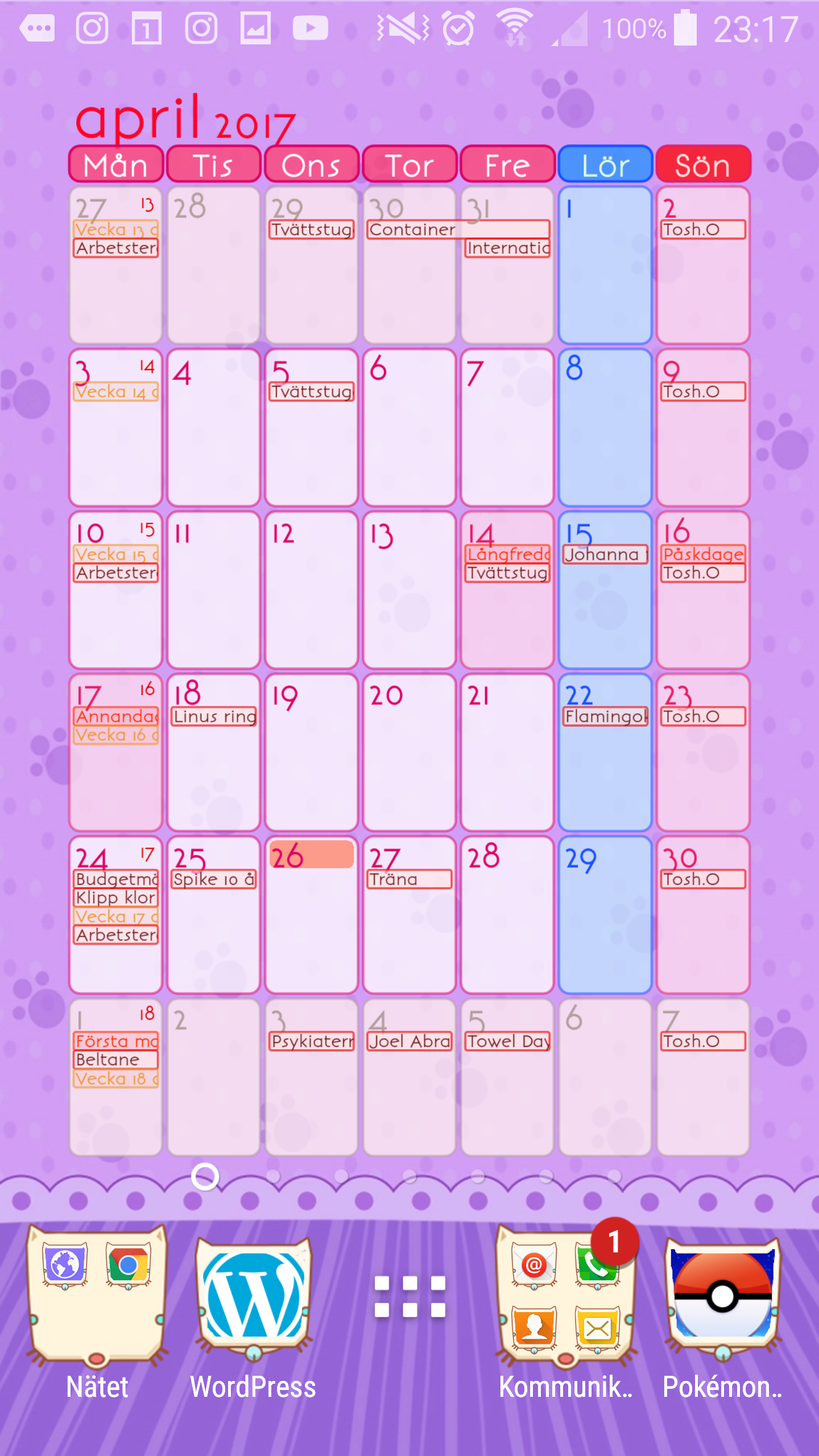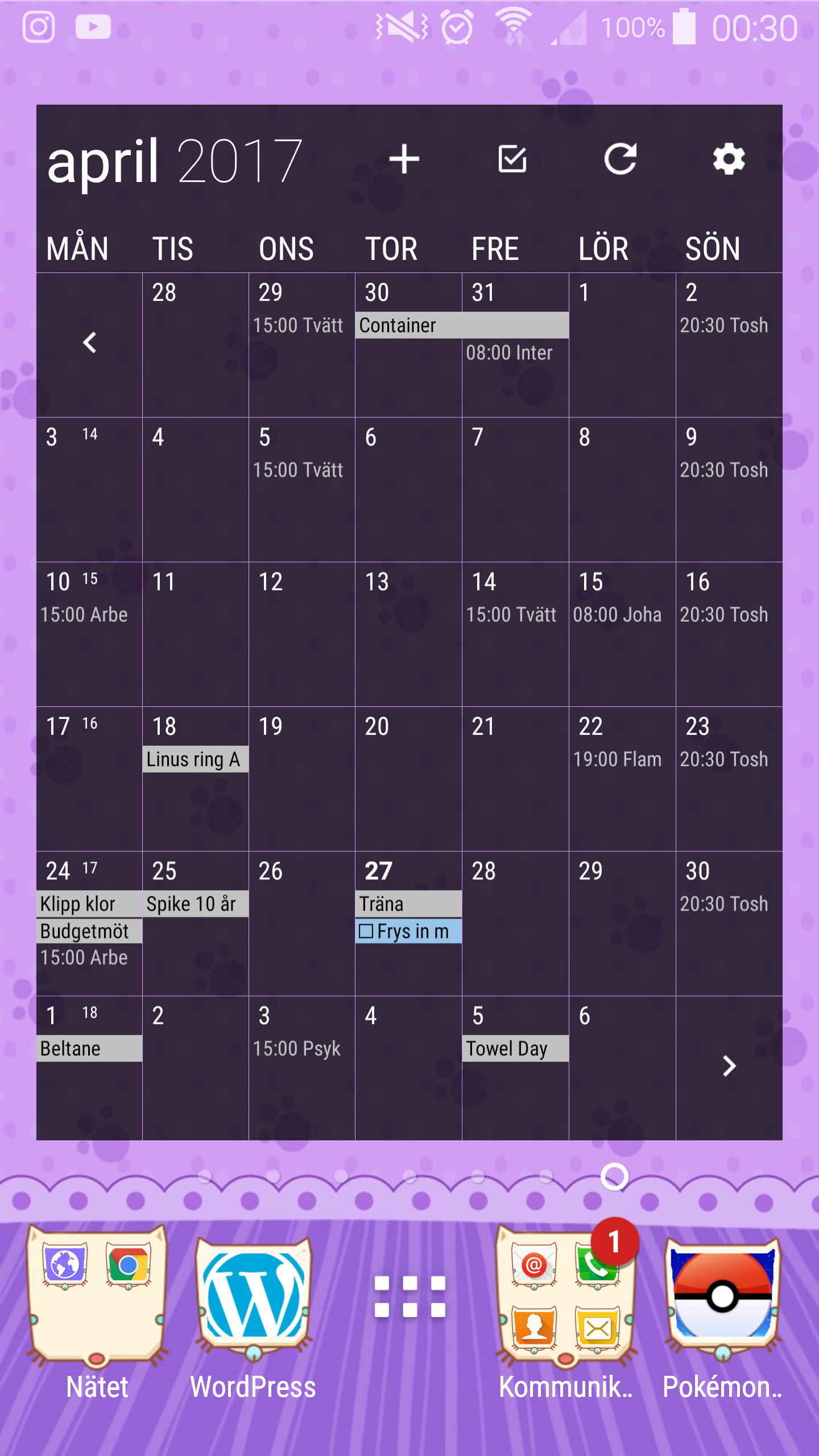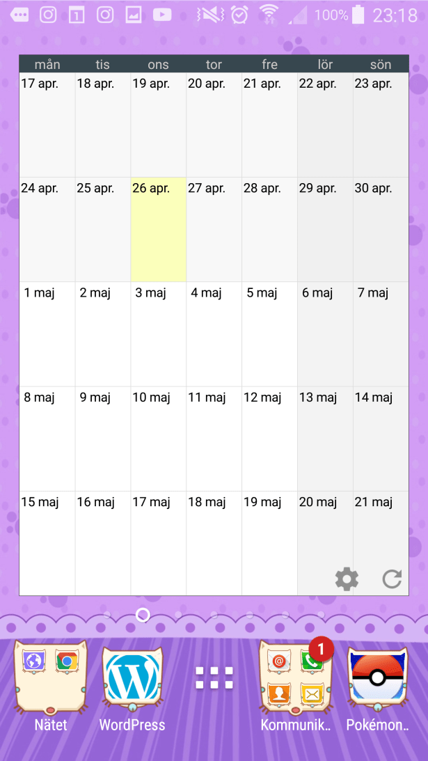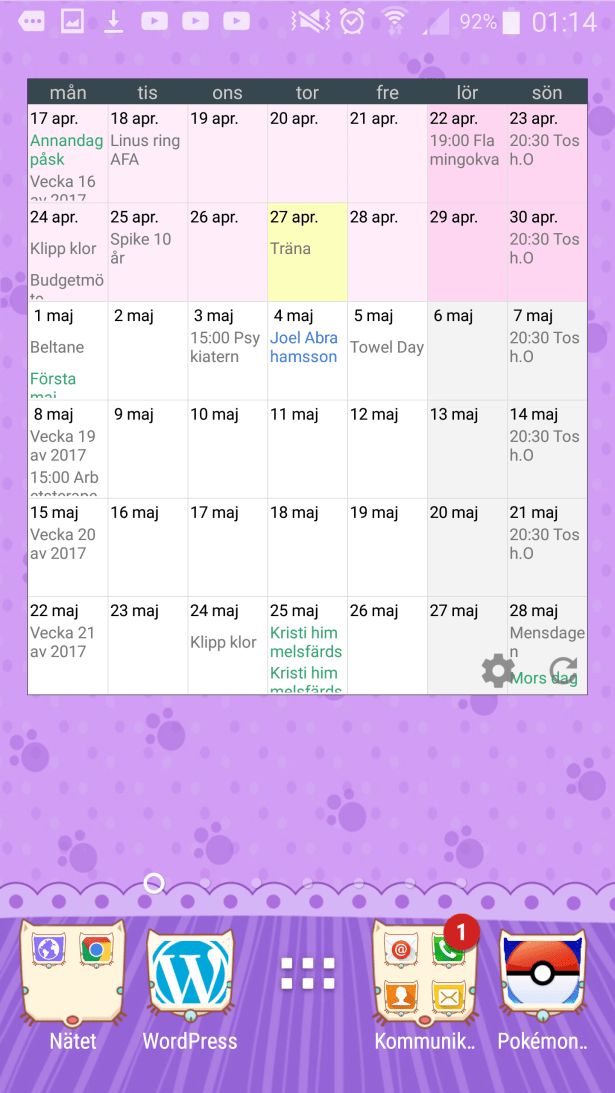 Tog bort den och tänkte att Jorte Kalender som jag hade till min Samsung galaxy s4 för några år sedan. Då gillade jag den eftersom den hade, nästan, oändliga inställningsmöjligheter. Nu – not so much.