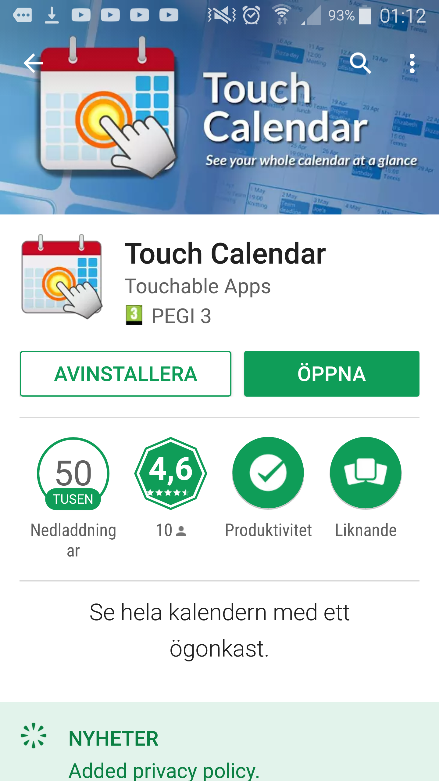 Sedan tog jag en chans på appen näst i listan, med högst rating, på ”Play butiken”: Business Calendar 2.