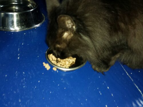 Annan, random, kattmat: (Spike vägrade äta, Smullibuttan tog två tuggor).