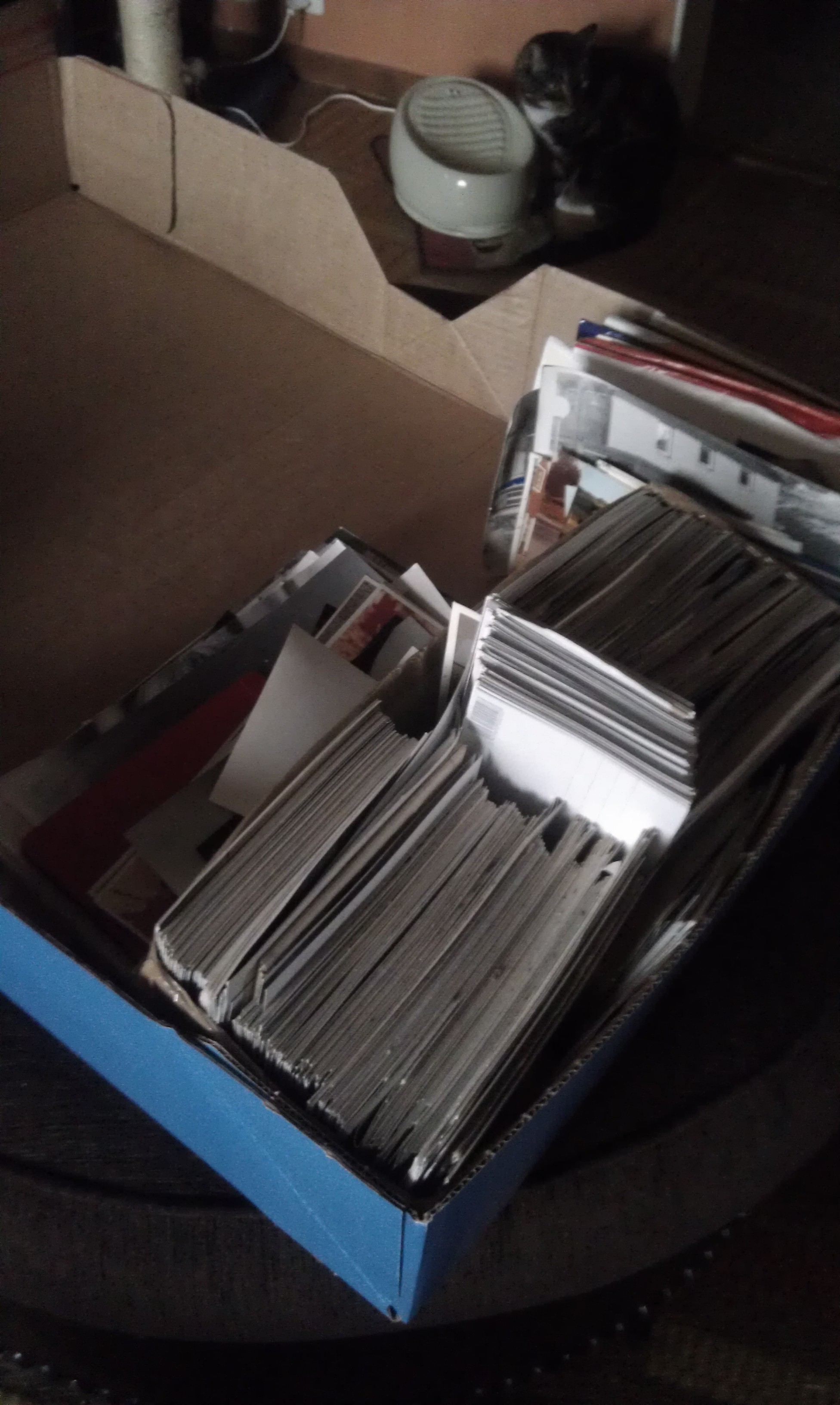 Jag har alltså tittat igenom dom och paketerat dom i kartong. Eventuellt kommer jag inköpa fotoalbum att klistra in dom i, annars innebär det bara att jag (i alla fall) har underlättat för den stackare som måste slänga skiten när jag dör.