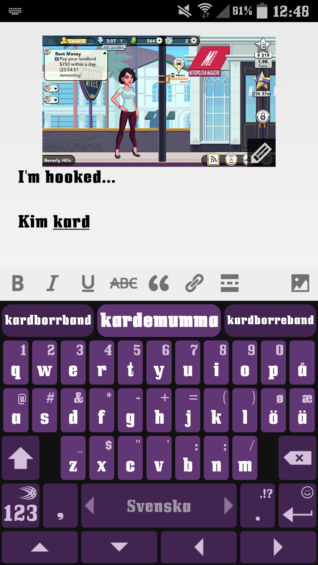 Kim Kardashians app. Började spela igår, kan inte sluta. Hjälp!