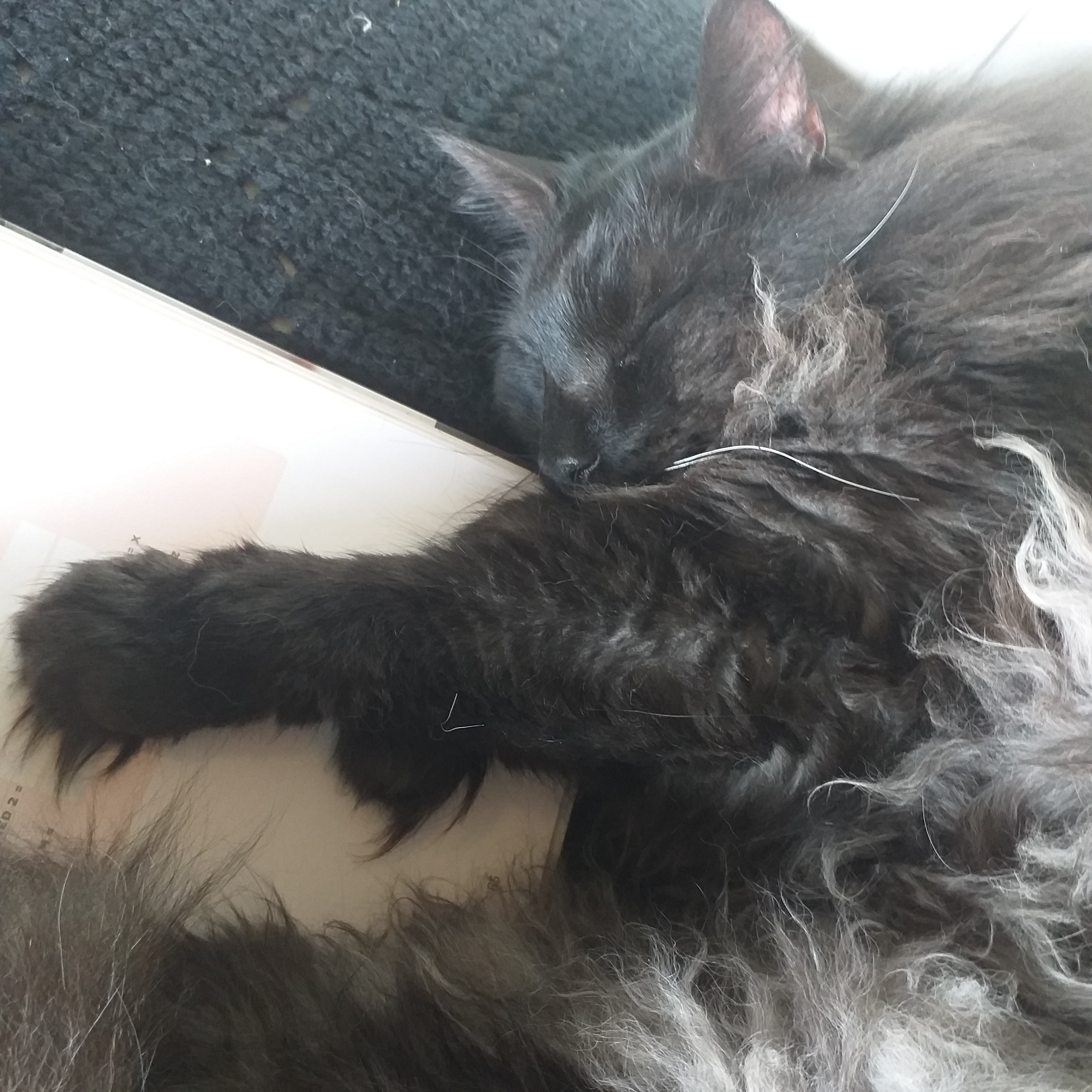 Spike har gått över regnbågsbron och nu mår han bra igen. Veterinären trodde att han möjligtvis även hade en tumör i ögat. Jag har knappt slutat att gråta än, det kommer och går hela tiden. Ropade ”Hallå Spiken” när jag kom hem. Jag vet att jag gjorde det rätta, men det är så jävla tungt. Jag beställde ett litet inramat tassavtryck som minne. Påminner om dödsannonsen och blomman från begravningen som jag har inramat från min far. Det är något viktigt, som jag alltid har framme. Det kändes som att det var något jag kunde göra för att hedra Spike. Jag kommer att sakna honom så mycket. Jag saknar honom nu!
