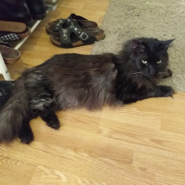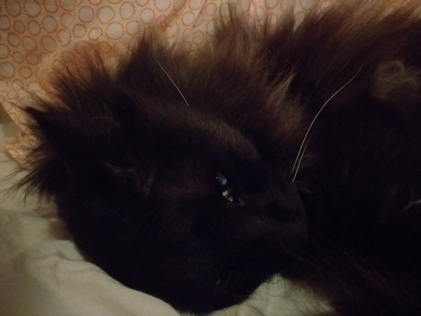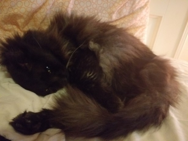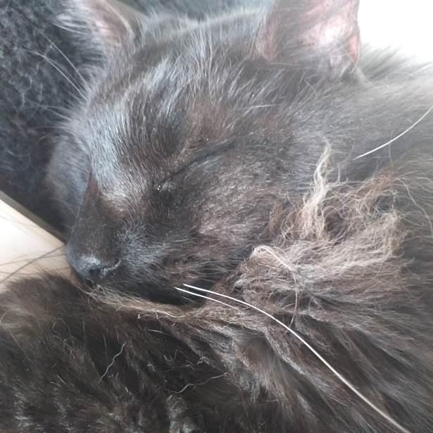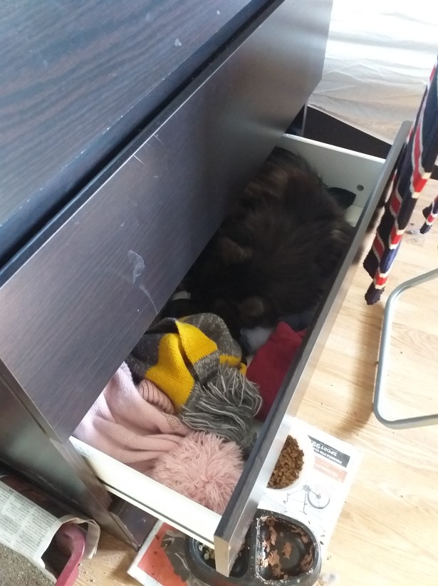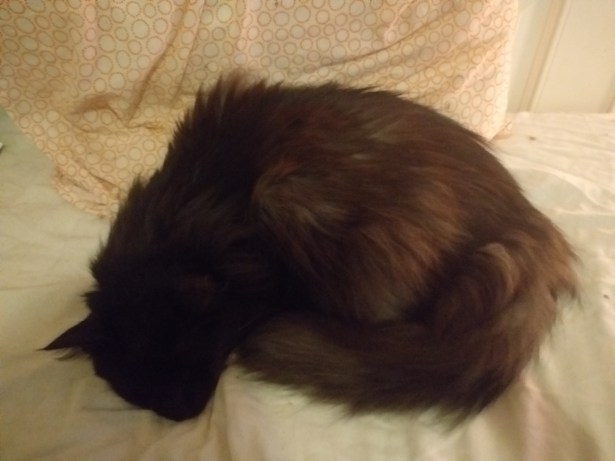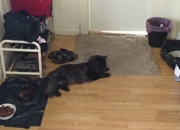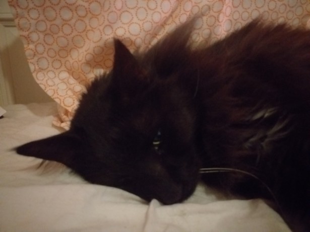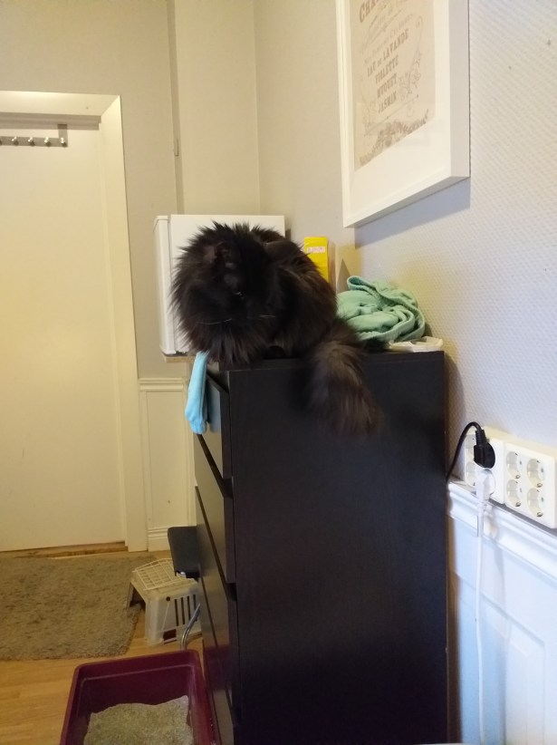 Varmt för stackarn idag. Han har spenderat större delen av dagen på golvet, istället för i lådan. Antar att det är lite svalare där.