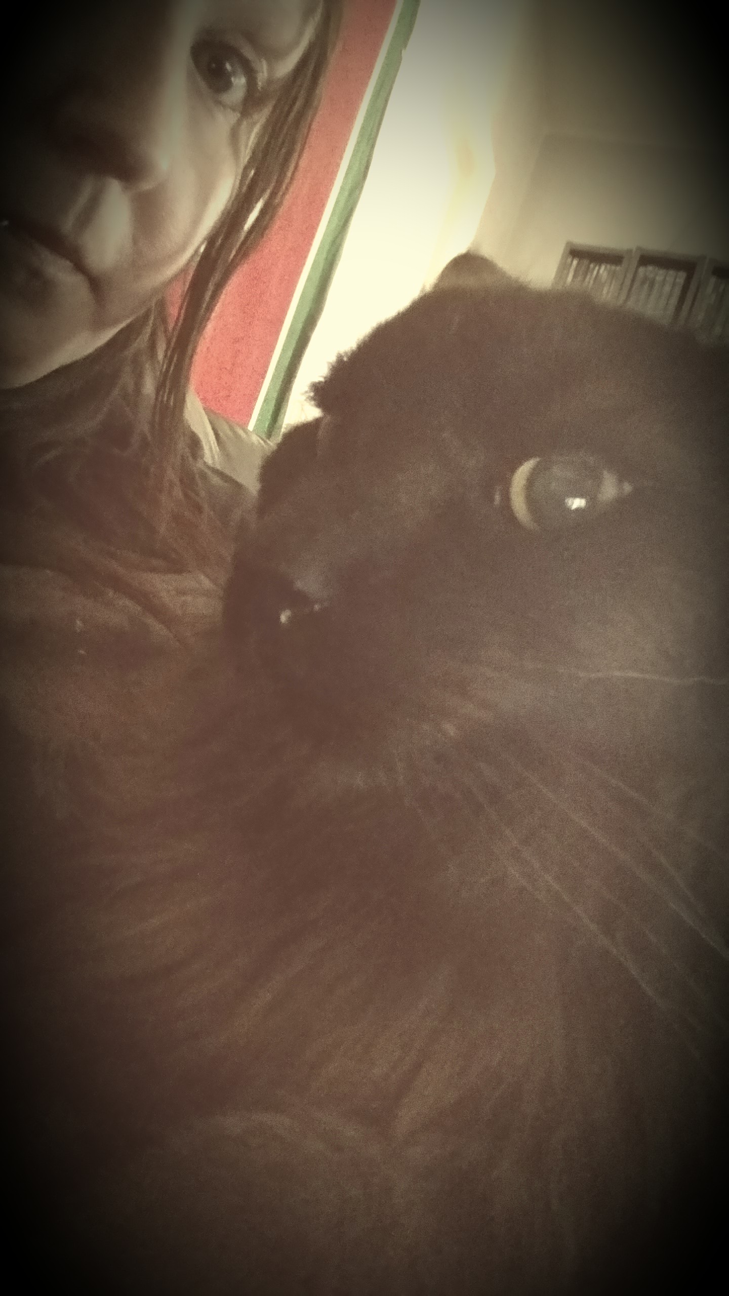 Ippo putsar sej själv och jag klappar lite. Se pälsen som ligger lite ovanför, inte konstigt att katthår fastnar överallt när det där uppstått efter två minuters ”skörd”.