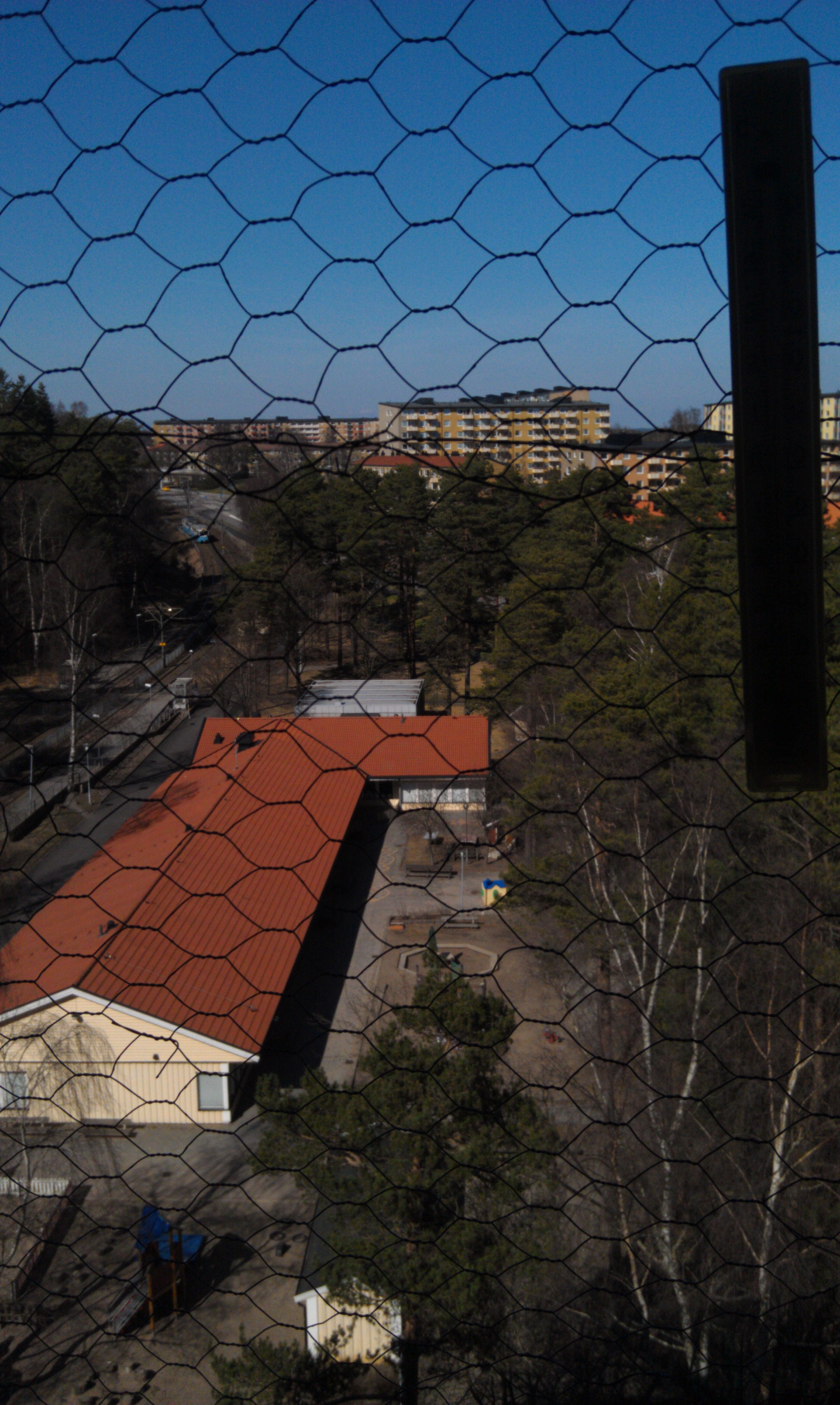 Nu sitter jag visserligen inne, men inte inburad… (Haha, gbg smittar av sej). ”Gallret” är ett kattnät, såklart.