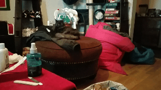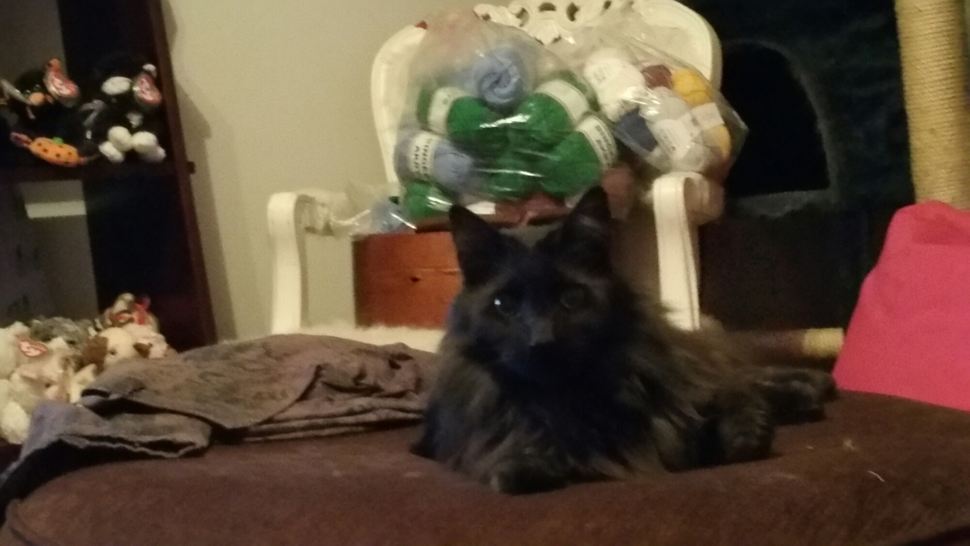 Försökte fota fejk-kissen i garderoben. Gick inte så bra.
